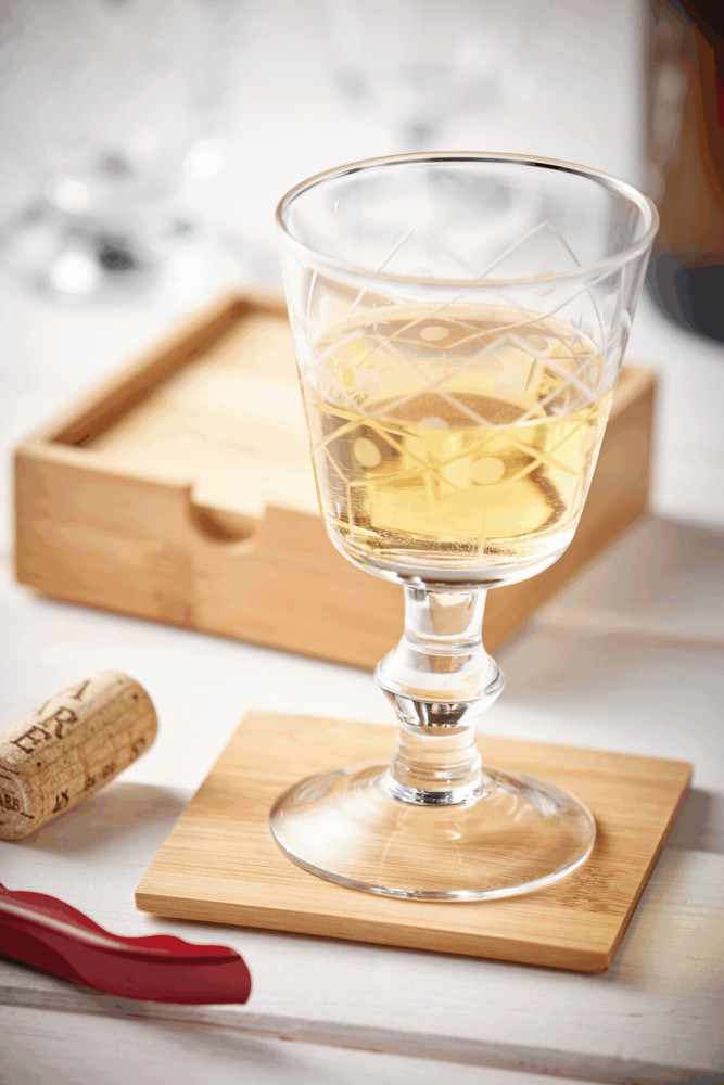 Untersetzer-Set PUT UNDER, 5-teilig: bestehend aus 4 Untersetzern und Bambus-Box, mit großer Fläche für eine Werbeanbringung, in Box