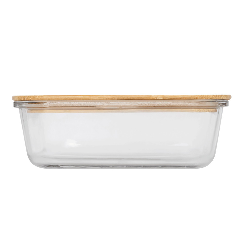 Lunchbox ROSILI L: mit Bambusdeckel mit Silikon-Dichtring, Glasschale für Mikrowelle, Backofen und Spülmaschine geeignet, Füllmenge ca. 1.060 ml, in Box