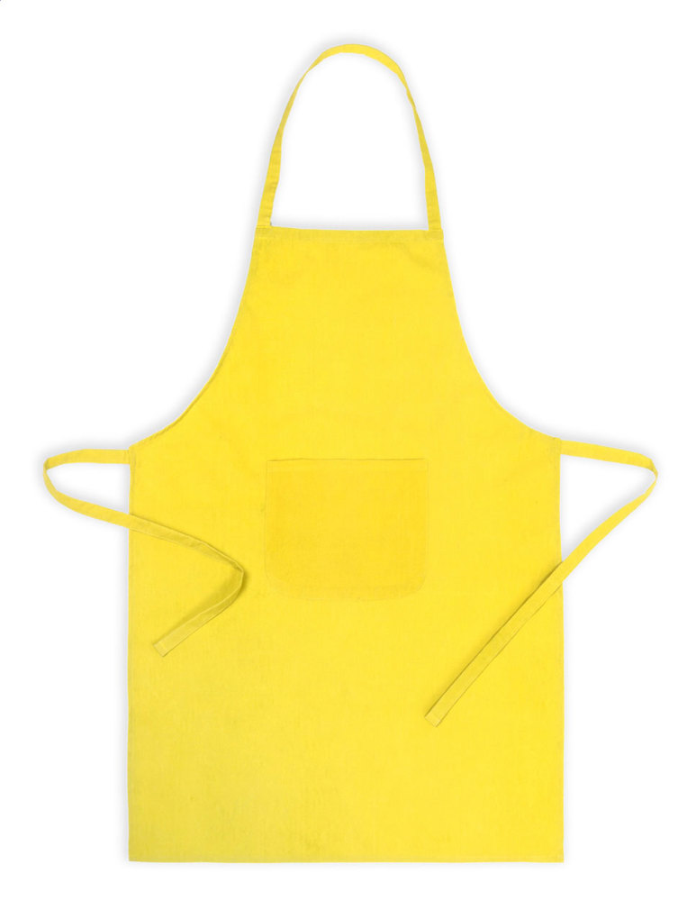 Farbige Schürze mit Brusttasche. Material: 35 % Baumwolle, 65 % Ployester.