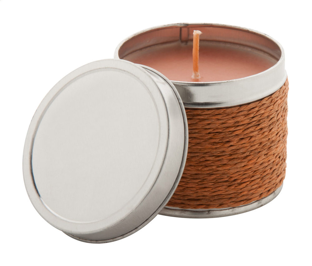 Duftkerze in einer Metalldose.