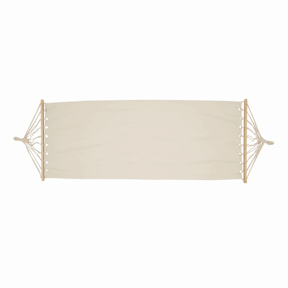 Hängematte aus Canvas SNOOZY: mit Seildurchführung aus Holz (Tragfähigkeit: ca. 120 kg), in Stofftasche mit Kordelzug und Kunststoffstopper