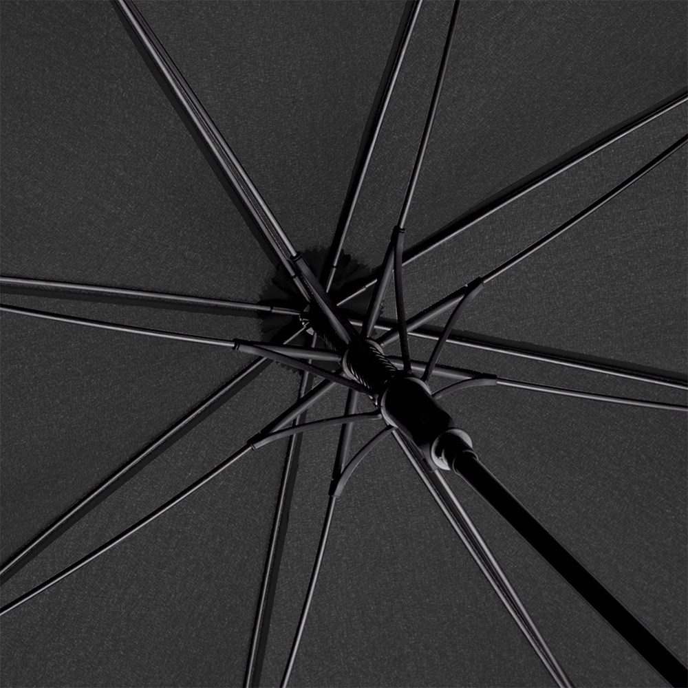 Komfortabler Automatik-Gästeschirm für zwei Personen mit handsympathischem Soft-Rundhakengriff Komfortable Automatik-Funktion zum schnellen Öffnen, hochwertiges Windproof-PLUS-System für eine maximale Gestell-Flexibilität bei stärkeren Windböen, flexible Fiberglasschienen, Soft-Rundhakengriff mit integrierter Auslösetaste, höherer Korrosionsschutz durch schwarze Galvanisierung des Stahlstocks, gastfreundlicher großer Durchmesser