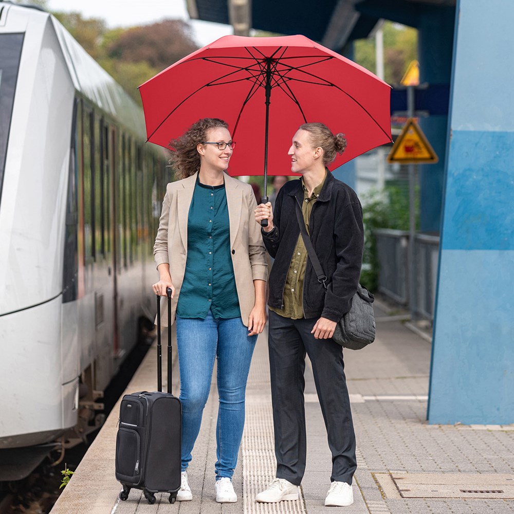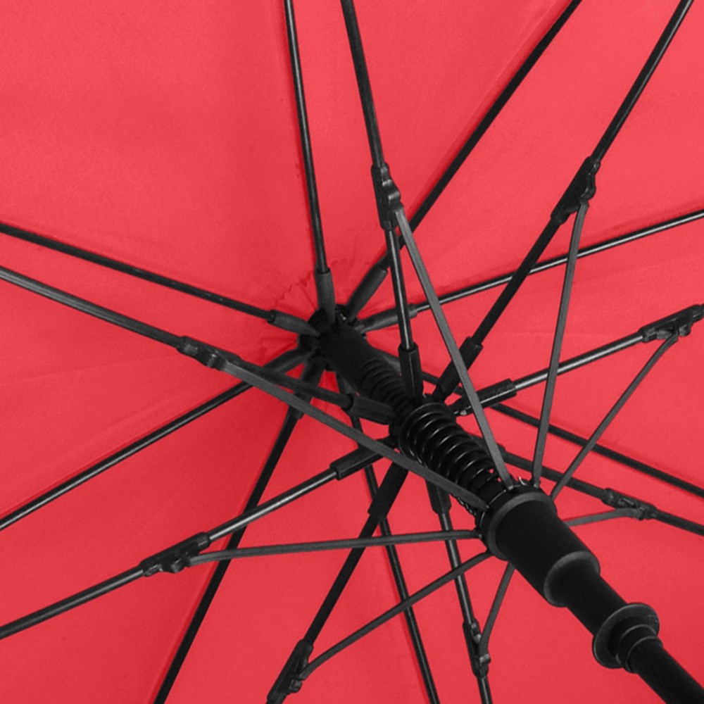 Äußerst stabiler Automatik-Gästeschirm für zwei Personen mit riesigem Durchmesser Komfortable Automatik-Funktion zum schnellen Öffnen, hochwertiges Windproof-PLUS-System für eine maximale Gestell-Flexibilität bei stärkeren Windböen, stabiler Fiberglasstock, flexible Fiberglasschienen, gerader Softgriff mit schmaler Auslösetaste, gastfreundlicher Durchmesser