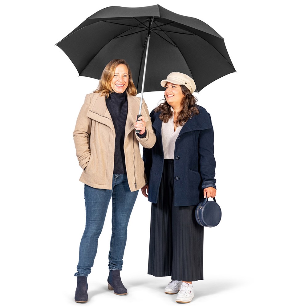 Stylischer Automatik-Gästeschirm für zwei Personen mit farblich auf den Bezug abgestimmtem Griff Komfortable Automatik-Funktion zum schnellen Öffnen, hochwertiges Windproof-PLUS-System für eine maximale Gestell-Flexibilität bei stärkeren Windböen, flexible Fiberglasschienen, leichter aber stabiler Aluminiumstock, formschöner Soft-Touch-Griff mit silberner Auslösetaste und Werbeanbringungsmöglichkeit, gastfreundlicher großer Durchmesser. Auch als Taschenschirm (Art. 5565, 5640) und als Stockschirm (Art. 7560) erhältlich.
