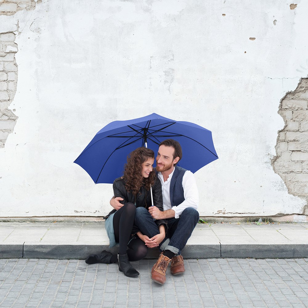 Stylischer Automatik-Gästeschirm für zwei Personen mit farblich auf den Bezug abgestimmtem Griff Komfortable Automatik-Funktion zum schnellen Öffnen, hochwertiges Windproof-PLUS-System für eine maximale Gestell-Flexibilität bei stärkeren Windböen, flexible Fiberglasschienen, leichter aber stabiler Aluminiumstock, formschöner Soft-Touch-Griff mit silberner Auslösetaste und Werbeanbringungsmöglichkeit, gastfreundlicher großer Durchmesser. Auch als Taschenschirm (Art. 5565, 5640) und als Stockschirm (Art. 7560) erhältlich.