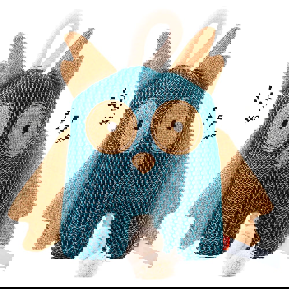 Nicht nur im Wald macht es Hund und Herrchen jede Menge Freude, mit dem Hundespielzeug Eule herumzutoben; die Eule ist das Highlight in jeder Spielkiste. Blau in Kombination mit Details aus Jute, spannenden Knotenelementen und seiner Knisterfunktion, wird der Spieltrieb großer und kleiner Hunde gefordert und gefördert. Die kleine Eule kommt gerne mit auf die Hunderunde durch Wiesen, Wald und Felder.