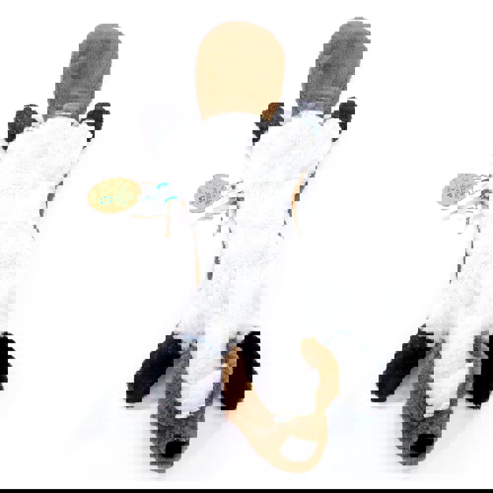 Ob tapsiger kleiner Welpe oder bereits erwachsener Hund, der Spieltrieb wird vom Hundespielzeug RecycelBiber bestens angesprochen. Zum Toben, Animieren, Apportieren und Kuscheln – dieses superweiche Hundespielzeug macht alles mit. Der RecycelBiber besteht aus genutzten und recycelten Plastikflaschen. Zudem sind Augen und Nasen des Bibers gestickt. Dieser Artikel ist daher ideal für umweltbewusste Menschen, die auf unnötigen Schnickschnack verzichten wollen. Für die Herstellung des Materials werden etwa 10 PET-Flaschen (500ml) verwendet.