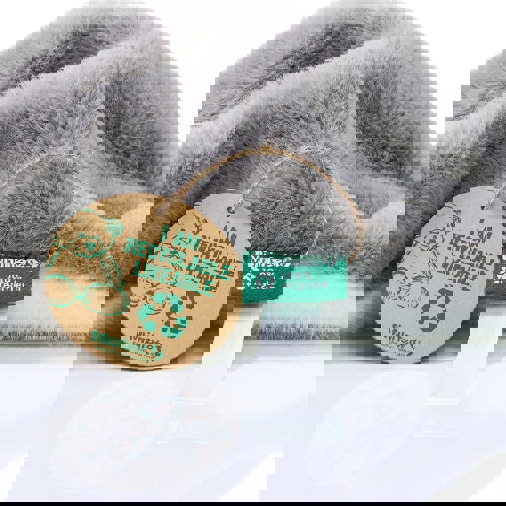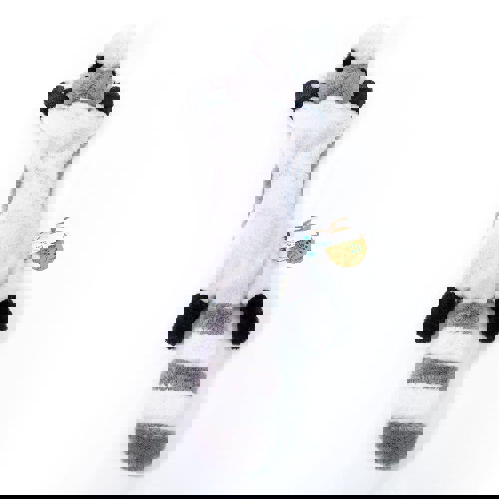 Hunde wollen kuscheln, toben, raufen und vor allem mittendrin sein. Das Hundespielzeug RecycelWaschbär macht Hund, Herrchen und Umwelt gleichermaßen glücklich. Liebevoll und sicher gestaltet, eignet es sich für mittelgroße und große Hunde ideal als Spielzeug. Toben, animieren, apportieren und kuscheln – dieses superweiche Hundespielzeug macht alles mit und besteht aus genutzten und recycelten Plastikflaschen. Zudem sind Augen und Nasen des Waschbären aufgestickt. Für die Herstellung des Materials werden etwa 10 PET-Flaschen (500ml) verwendet.