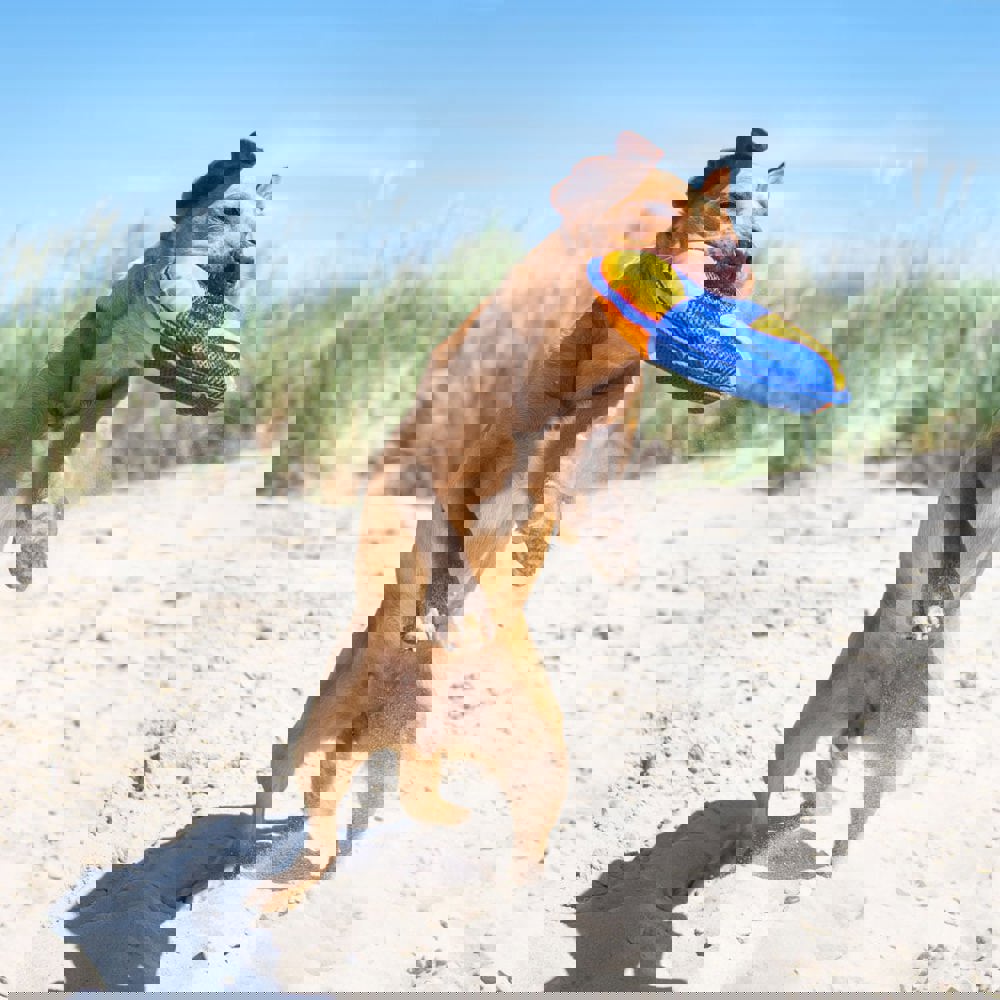 Dieses praktische Give-away bringt jede Menge Bewegung ins Spiel. Dabei darf es gerne auch die Flugbahn Richtung Wasser einnehmen, denn dieses Spielzeug geht nicht unter, sondern schwimmt auf der Wasseroberfläche. Durch die bunten Farben ist es leicht wiederzufinden. Der kleine verarbeitete Quietscher sorgt für extra Spaß. Praktisch, bunt, flugtauglich und robust, so macht Hundetraining richtig Spaß. Ein tolles Präsent für alle Hundefreunde.