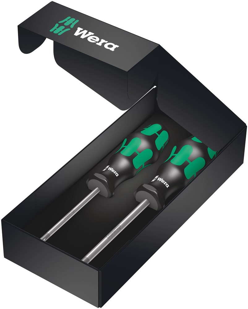 Schraubendreher für Kreuzschlitzschreiben Pozidriv. Mehrkomponentiger Kraftform Griff für schnelles und ergonomisches Verschrauben. Mit Werkzeugfinder Take it Easy: Farbkennzeichnug nach Profilen und Größenstempelung. Mit Sechskantabrollschutz gegen Wegrollen. Mit Lasertip Spitze für mehr Halt im Schraubenkopf