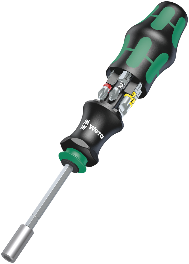 Kraftform Griff, mehrkomponentig, mit Abrollschutz und integriertem Bitmagazin. BiTorsion Bits für lange Lebensdauer. Mit Werkzeugfinder Take it Easy: Farbkennzeichnung nach Profilen und Größen