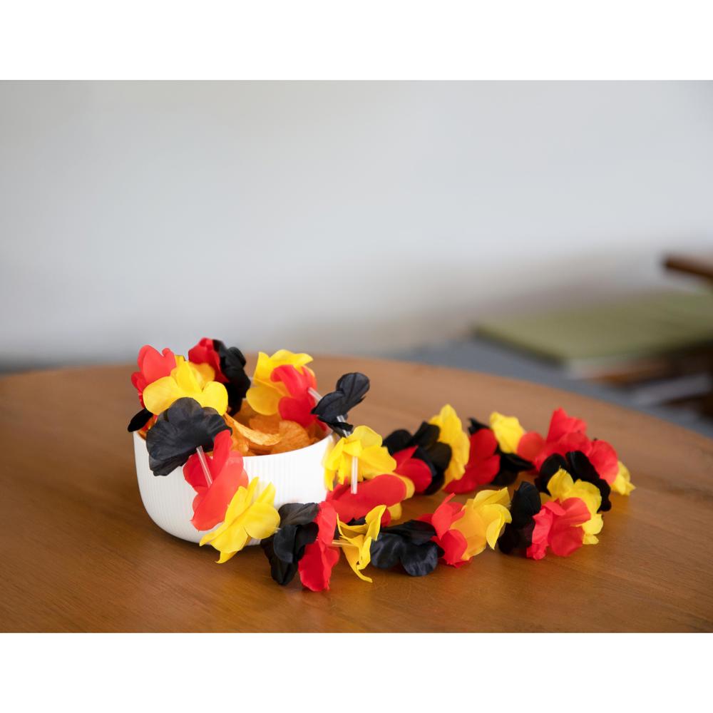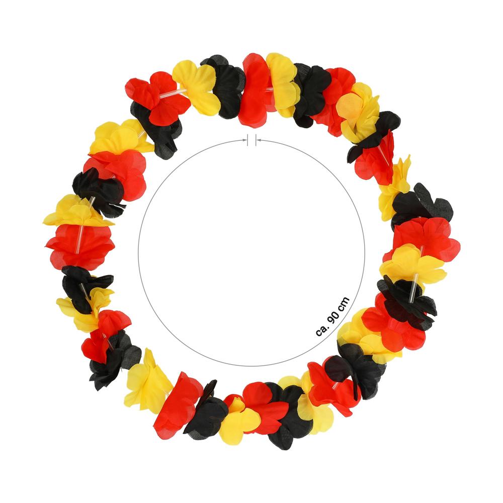 Für echtes Fan-Feeling: Blumenkette zum Umhängen aus 36 Doppelblüten in Deutschlandfarben. Leicht und angenehm zu tragen.
