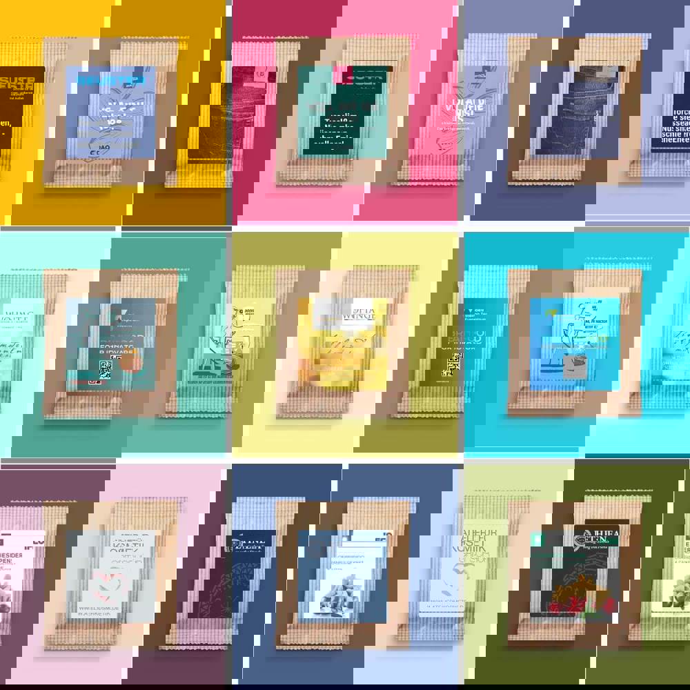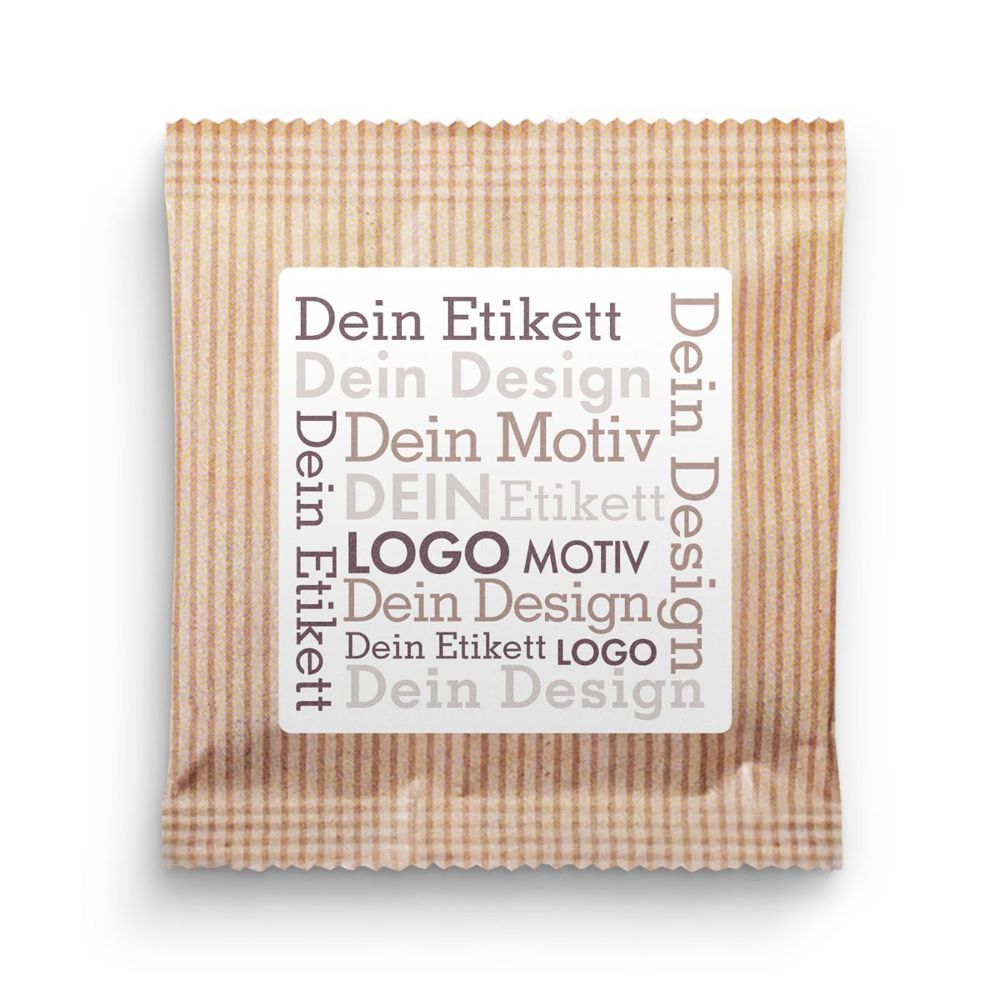 Ab 500 Stück mit Ihrem Motiv im 4c Druck auf dem Etikett des Flowpacks, ab 3.500 Stück... mehr