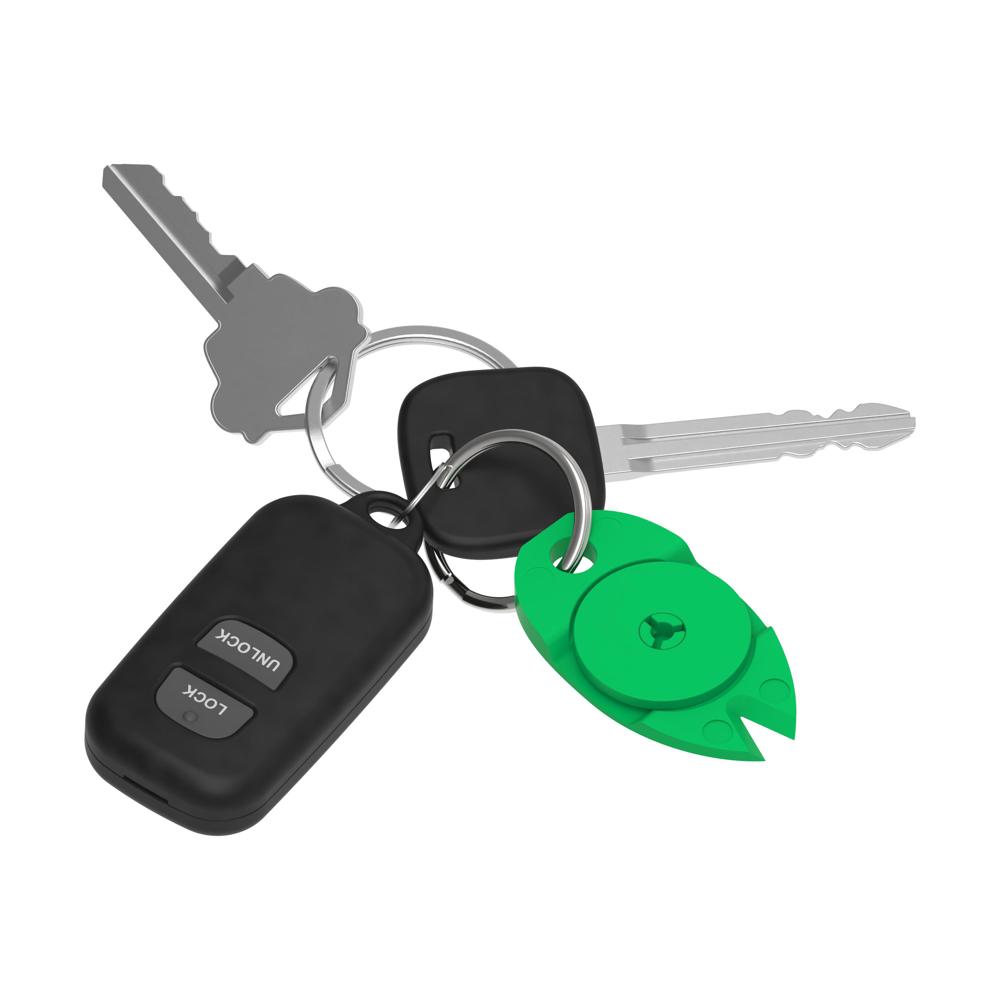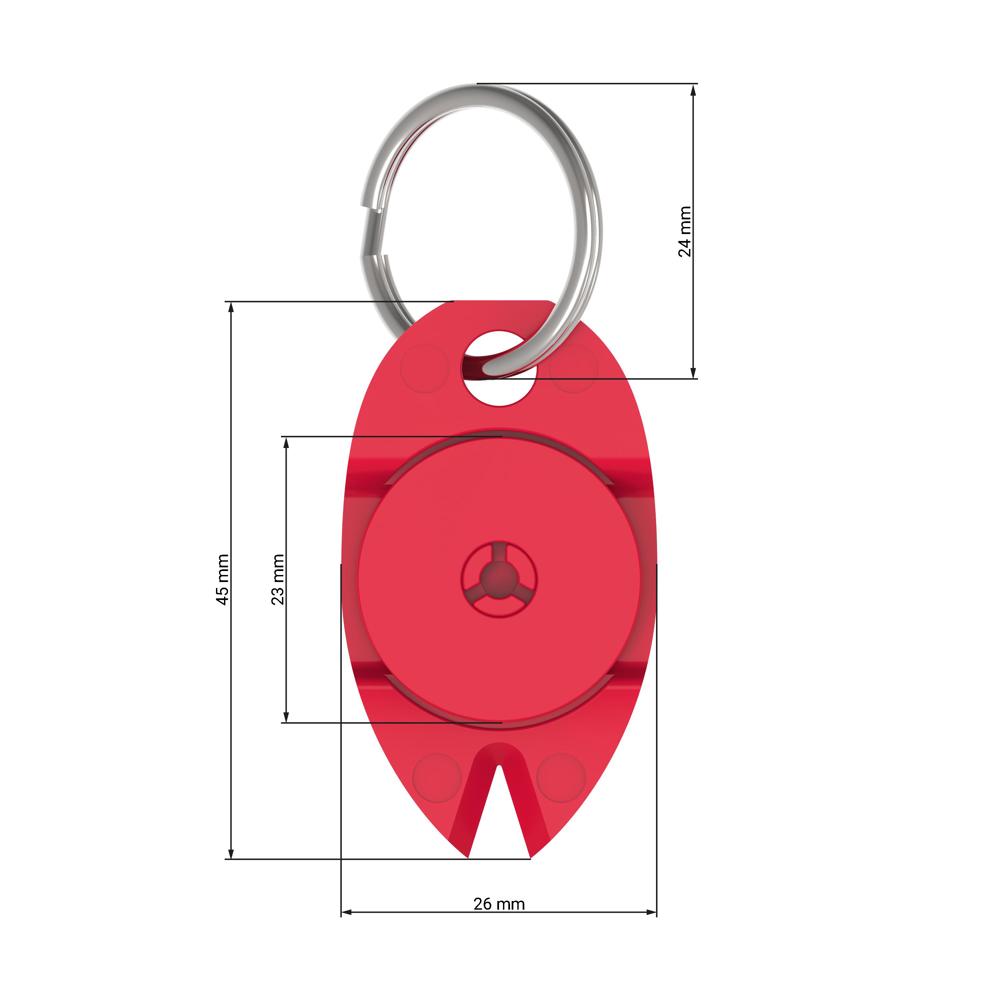 Mehr als nur praktisch: der Einkaufswagenchip ist im Gehäuse des Schlüsselanhängers integriert, das eine Einkerbung für eine zusätzliche Nutzung hat. Durch die spezielle Form lässt sich eine Zecke leicht von der Haut entfernen. Inkl. Schlüsselring.