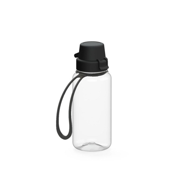 Die perfekte Flasche für Kindergarten, Schule und Freizeit. Praktische und geschmacksneutrale Trinkflasche aus robustem TritanTM mit Strap aus Silikon. Dieser ermöglicht zum Beispiel einen einfachen Transport der Flasche am Handgelenk. Durch die große Öffnung lässt sich die Flasche leicht befüllen. Der kindgerechte Verschluss ist leicht zu öffnen. Füllvolumen: 0,4 Liter.