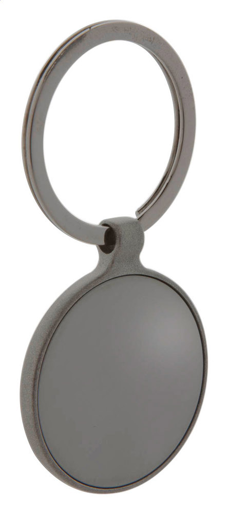 Runder Schlüsselanhänger aus Metall mit Gun-Metal-Oberfläche und polierten Plättchen auf beiden... mehr