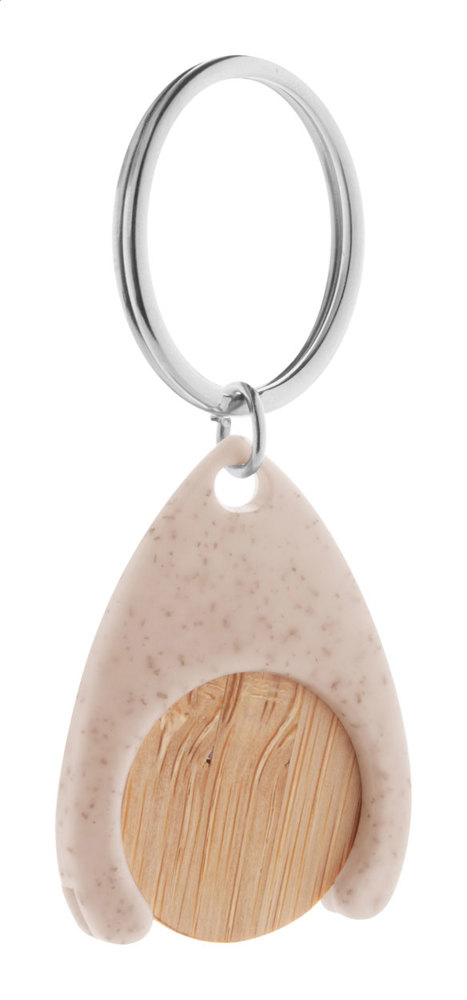 EKW-Chip aus Bambus in einem Schlüsselanhänger aus ökologischem Weizenstrohkunststoff. Chipgröße: ø25×2 mm.