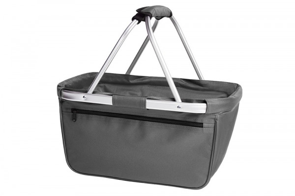 formschöner Einkaufskorb mit Alurahmen und Reißverschluss-Vortasche; faltbar
