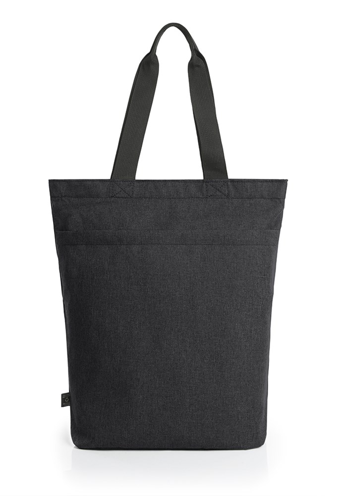 urbaner Shopper mit Reißverschluss-Hauptfach; rPET-Obermaterial; gepolsterter Boden; Reißverschluss-Vortasche; zwei Tragegriffe