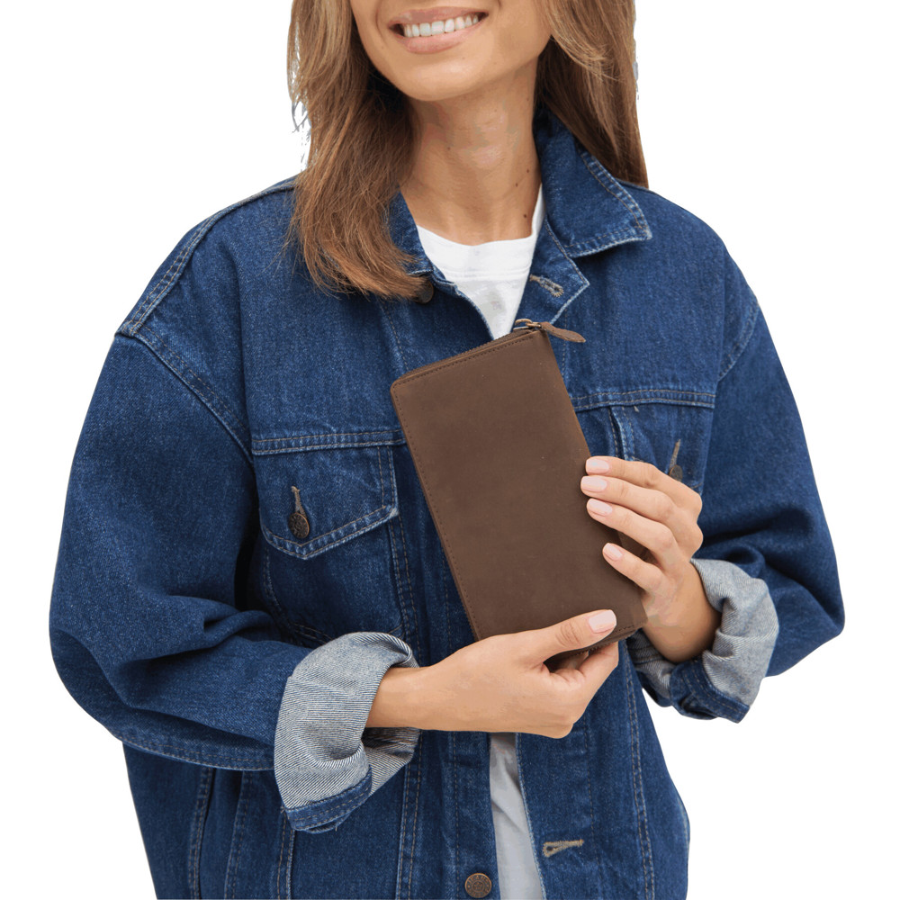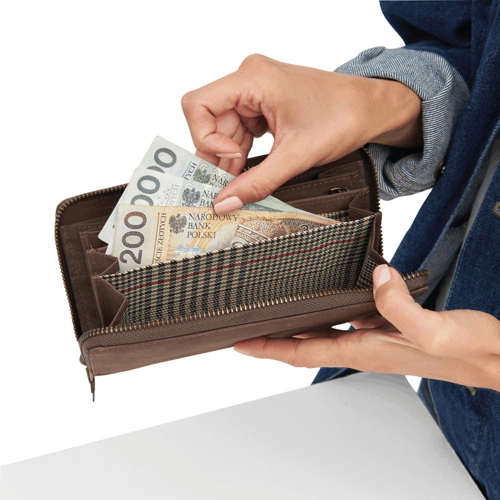 Echtleder-Geldbörse LADY: mit Reißverschluss zum Verschließen, innen 12 Einsteckfächer für Geldkarten mit RFID-Abschirmung zum Schutz vor unerwünschtem Scannen, 3 Geldscheinfächer, 1 Münzfach mit Reißverschluss für Kleingeld, 2 zusätzliche Fächer, in Box