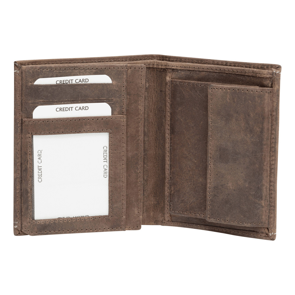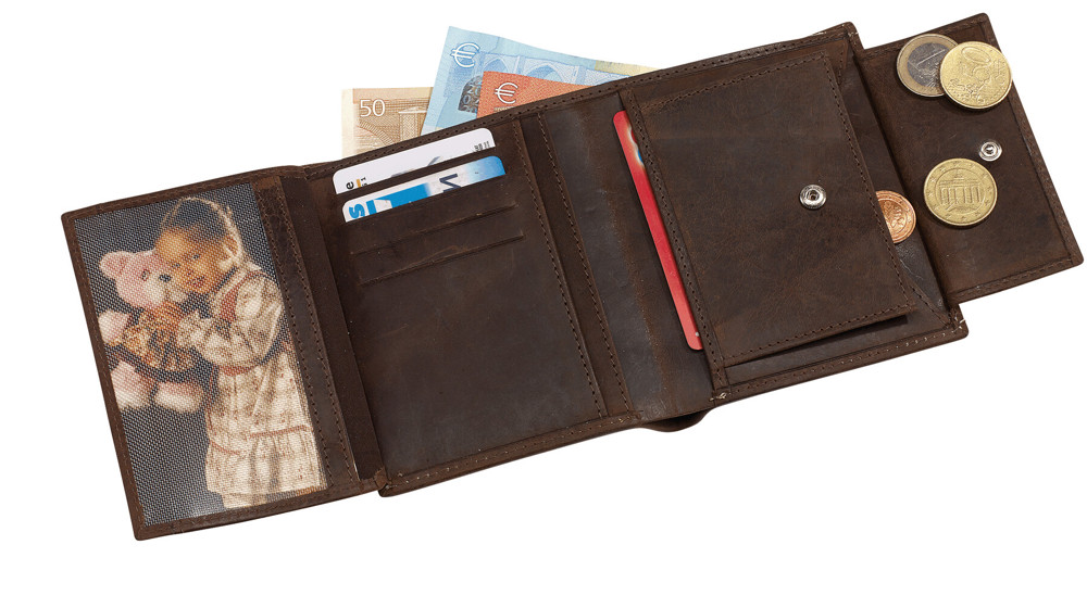 Echtleder-Geldbörse WILD STYLE II - im Hochformat: innen 6 Einsteckfächer für Geldkarten, 2 Geldscheinfächer, 1 Münzfach mit Druckknopfverschluss für Kleingeld, 2 Netzfächer, 4 zusätzliche Fächer, außen dekorative Ziernähte, in Box