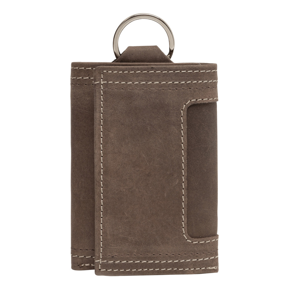 Echtleder-Schlüsseletui WILD STYLE III: mit 2 Druckknöpfen zum Verschließen, 1 großer Schlüsselring, innen 6 kleine Schlüsselhaken, 4 Einsteckfächer für Geldkarten, 1 Geldscheinfach, außen dekorative Ziernähte, in Box