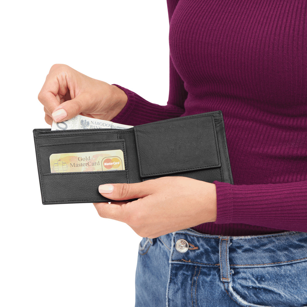 Echtleder-Geldbörse PALERMO: innen 1 Einsteckfach für Geldkarten, 2 Geldscheinfächer, 1 Münzfach mit Druckknopfverschluss für Kleingeld, 1 zusätzliches Fach, in Box