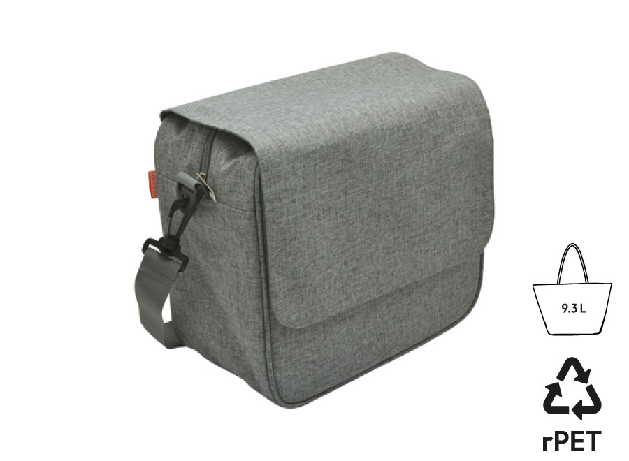 Die Vorteile in Kürze: - Elegante grau melierte Oberfläche, die zu jedem Stil passt. - 'Besace'-Format, das sich von der traditionellen Thermotasche abhebt. - Verwendung von RPET (recycelte Verpackung) zur Verringerung der Umweltauswirkungen der Produktion.