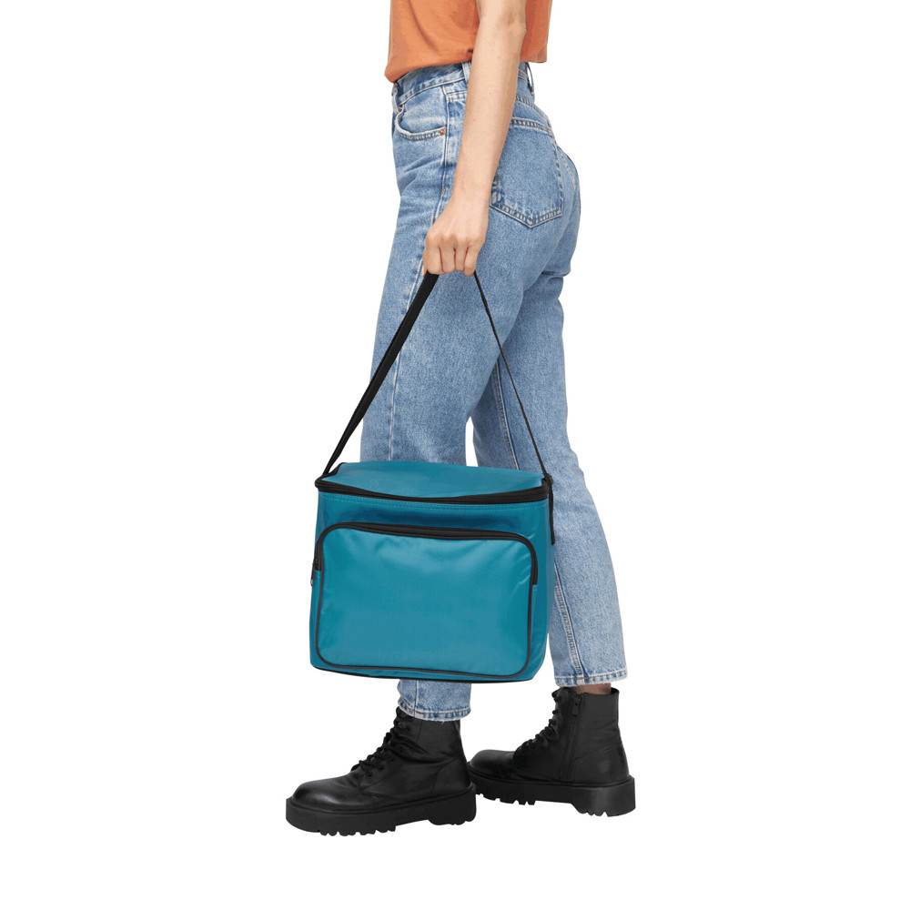 Kühltasche ICE im quadratischen Format: mit isoliertem Reißverschluss-Hauptfach, ein Reißverschlussfach auf der Front, verstellbarer Schultergurt
