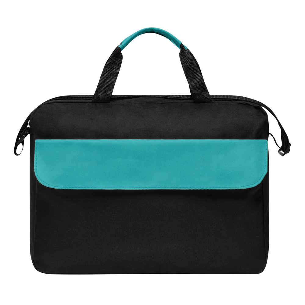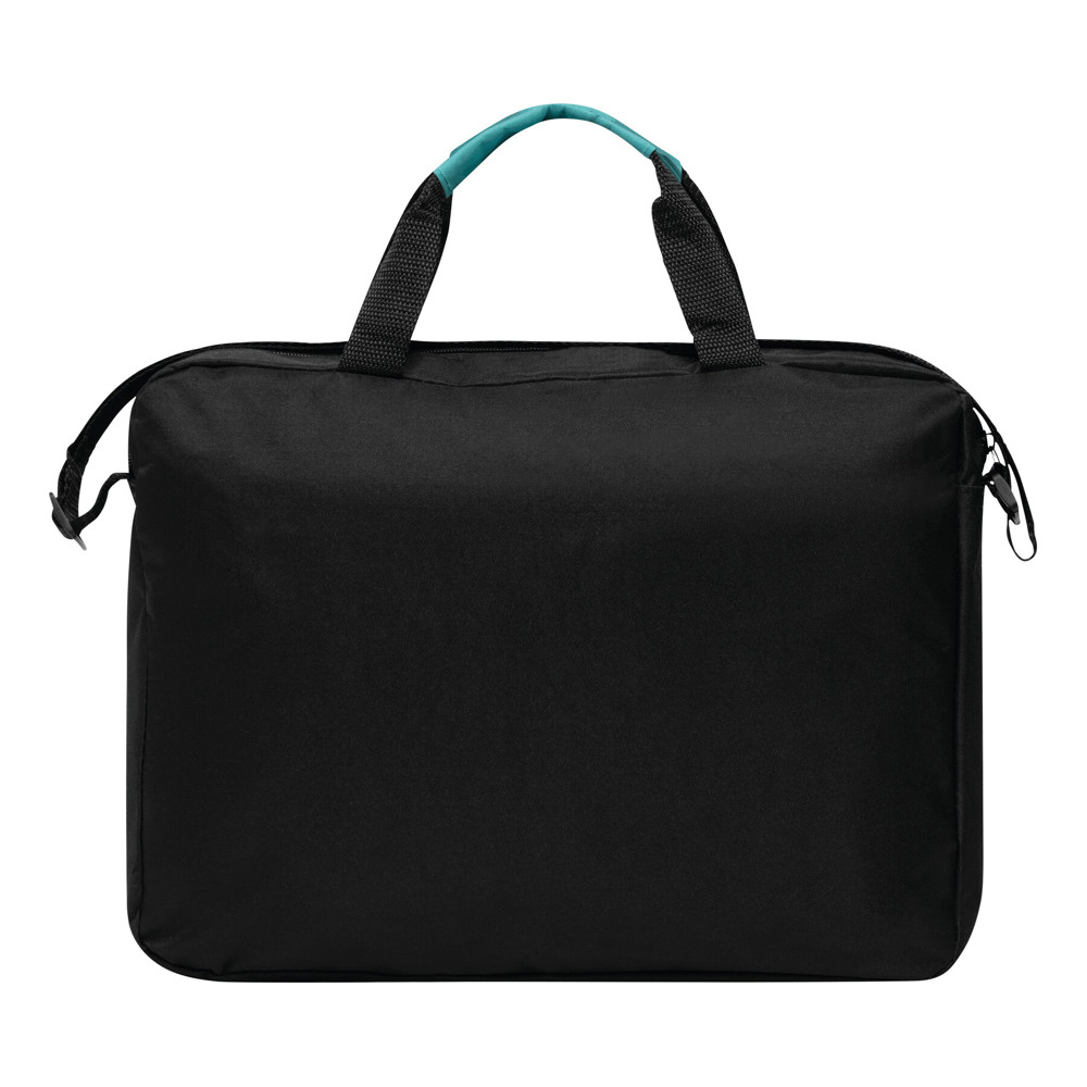 Dokumententasche BRISTOL: Klettverschluss-Vorfach mit farblich abgesetztem Umschlag, geräumiges Reißverschluss-Hauptfach, 2 verstärkte und farblich abgesetzte Tragegriffe, verstellbarer Schultergurt