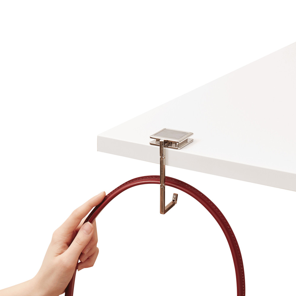 Handtaschen-Halter MONTREUX, ausklappbar: Oberseite aus Edelstahl für Werbeanbringung, gummierte... mehr