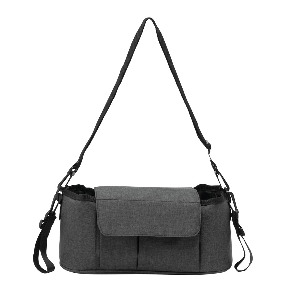 Kinderwagentasche BABY AID: schnelle und problemlose Befestigung am Kinderwagen mit abnehmbaren Klettverschluss-Schlaufen, Hauptfach mit 2 Getränkehaltern und einem Reißverschlussfach, 2 Steckvorfächer, abnehmbarer und verstellbarer Schultergurt