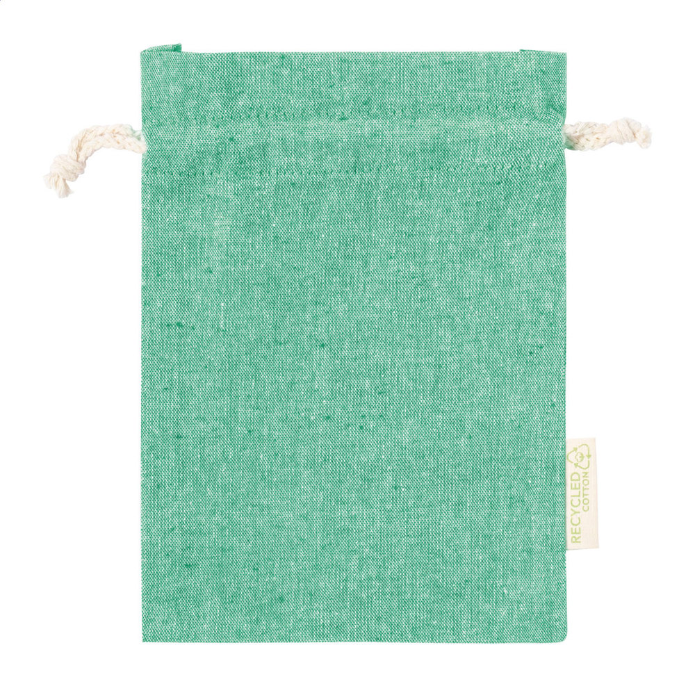 Wiederverwendbarer Obst-/Gemüsebeutel aus recycelter Baumwolle mit Kordelverschluss, Material 100 % recycelte Baumwolle, 120 g/m².