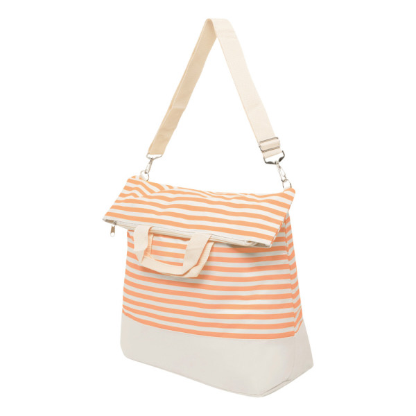 Strandtasche JUIST: geräumiges Reißverschluss-Hauptfach, 2 bequeme Tragegriffe, verstell- und abnehmbarer Schultergurt, durch Umklappen des Oberteils und Magnetverschluss kann das Volumen der Tasche auf innovative Art um ca. 25 % verkleinert werden