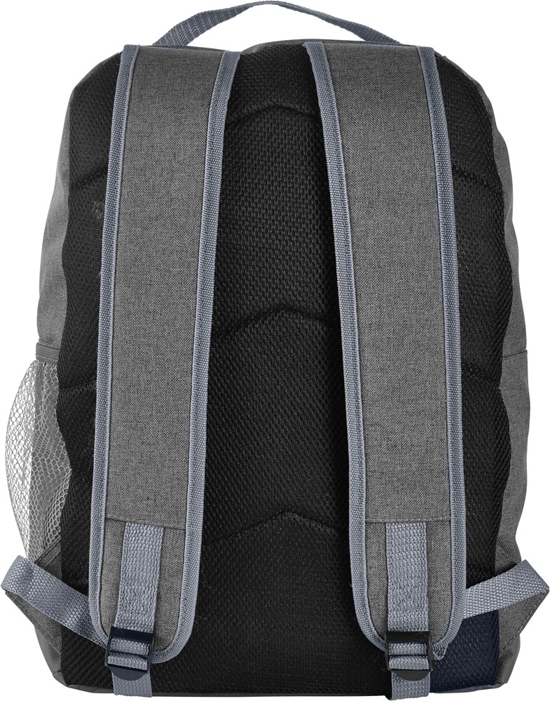 Rucksack aus Polycanvas (600D), mit RV-Hauptfach, Fronttasche mit Klettverschluss, Tragegriff, seitlichem Netzfach, Aufhängeöse und gepolsterten Schultergurten.