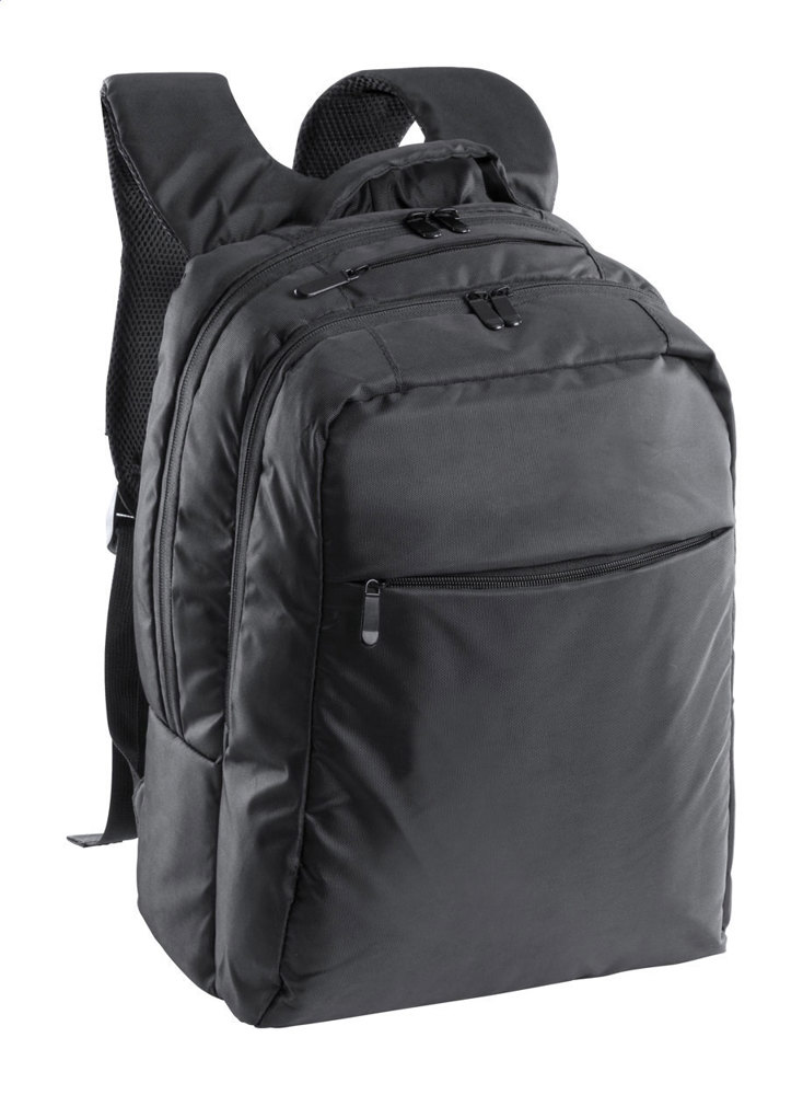 Rucksack mit mehreren Reißverschlusstaschen, gepolstertem Laptopfach (15"), Rückenpartie und Schultergurten. Material: 600D Nylon.