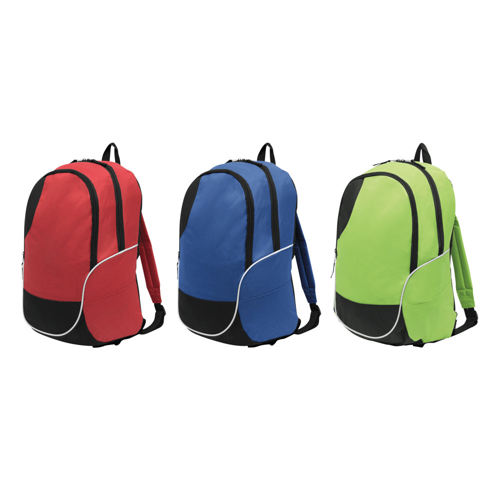 Rucksack CURVE: Reißverschluss-Hauptfach, Reißverschluss-Vorfach, Trageschlaufe, gepolsterte Schultergurte und Rückenbereich