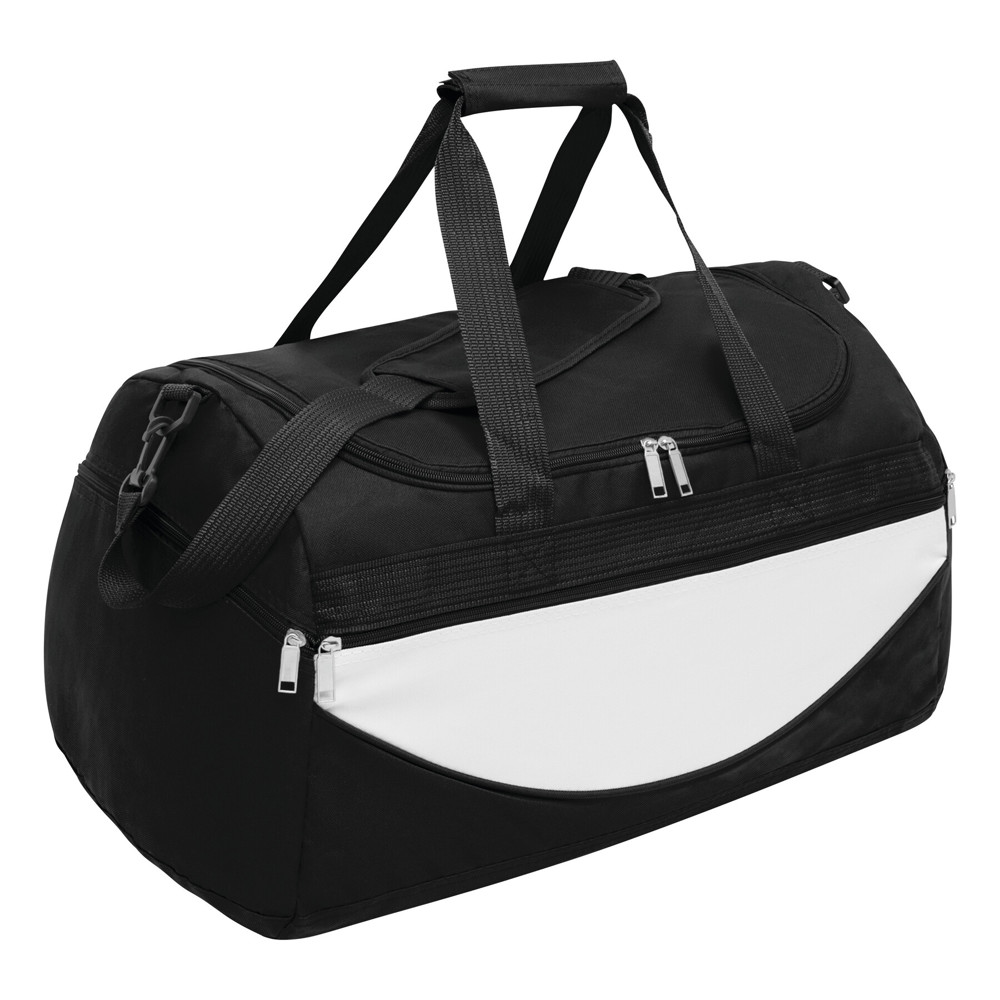 Sporttasche CHAMP: Reißverschluss-Hauptfach, farblich abgesetztes Reißverschluss-Vorfach, seitliche Reißverschlusstaschen, verstärkte Tragegriffe, verstell- und abnehmbarer Gurt mit Schulterpolster