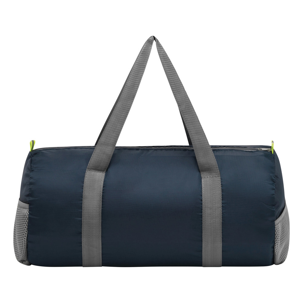 Sporttasche VOLUNTEER GYM, faltbar: Reißverschluss-Vorfach, Reißverschluss-Hauptfach mit 2 Reflektor-Etiketten, 2 seitliche Netzfächer, 2 lange Tragegriffe – lässt sich platzsparend zu einer Mini-Tasche zusammenfalten und passt perfekt in die Handtasche
