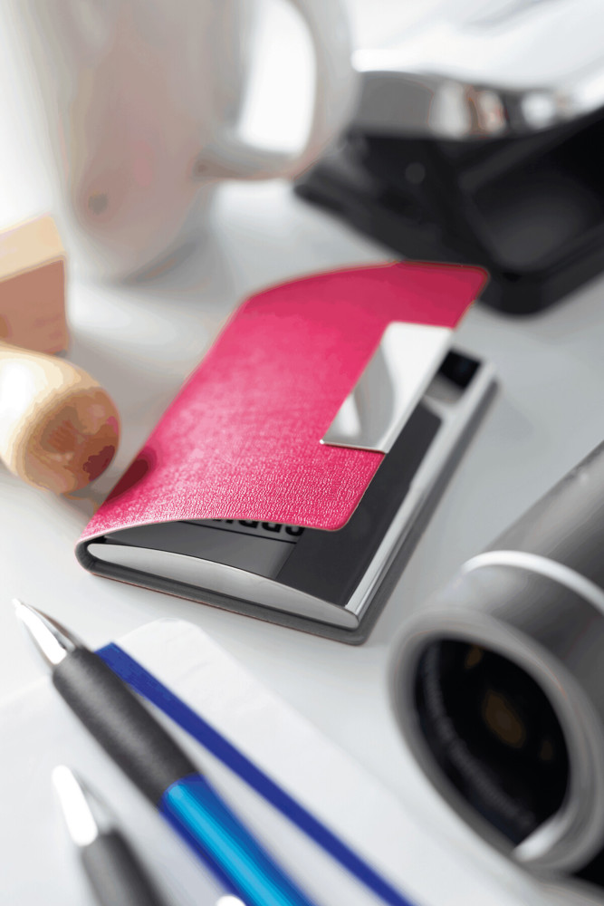 Visitenkartenetui ATLAS: mit magnetischem Verschluss und Metallplättchen zur Werbeanbringung, in Box
