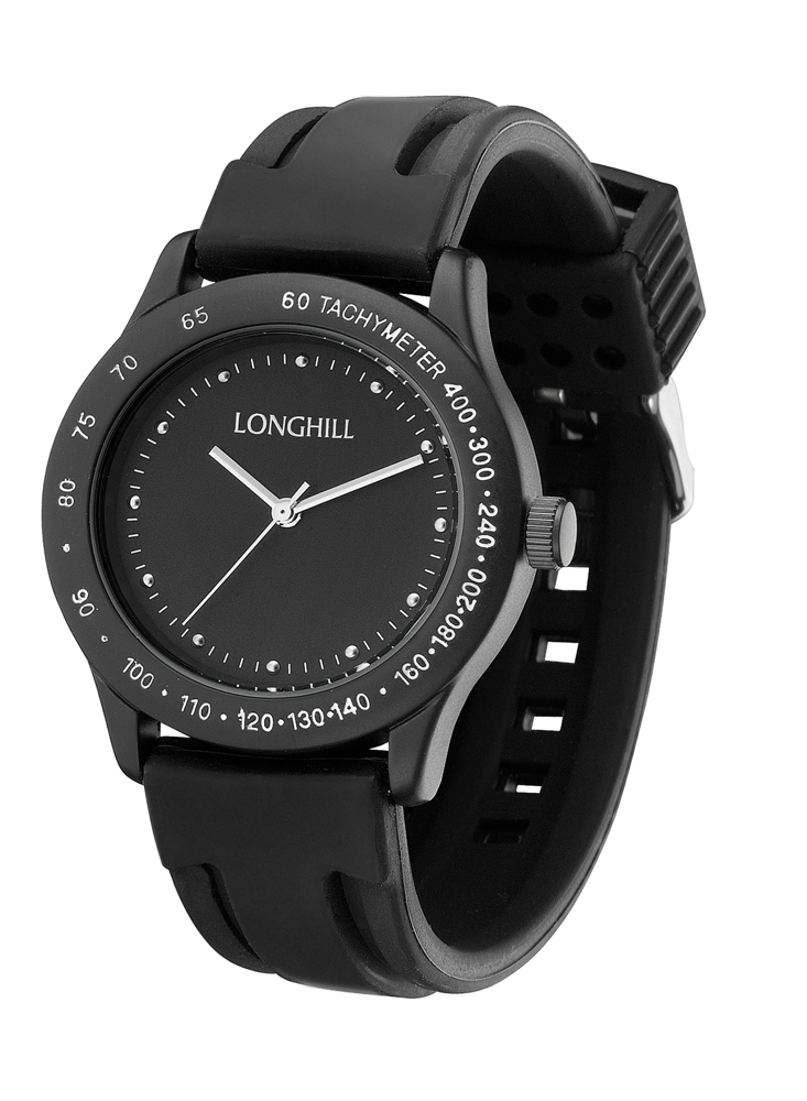 Ausstattung: Gehäusetiefe: 9,9 mm, Uhrwerk: PC 21, Zifferblatt schwarz, Tiefenätzung, Stundenapplikation silber, Zeiger 1 silber, Gehäuseboden Edelstahl, 3 ATM waterresistant, Silikonarmband schwarz 20 mm, Tachymeter weiß geprägt