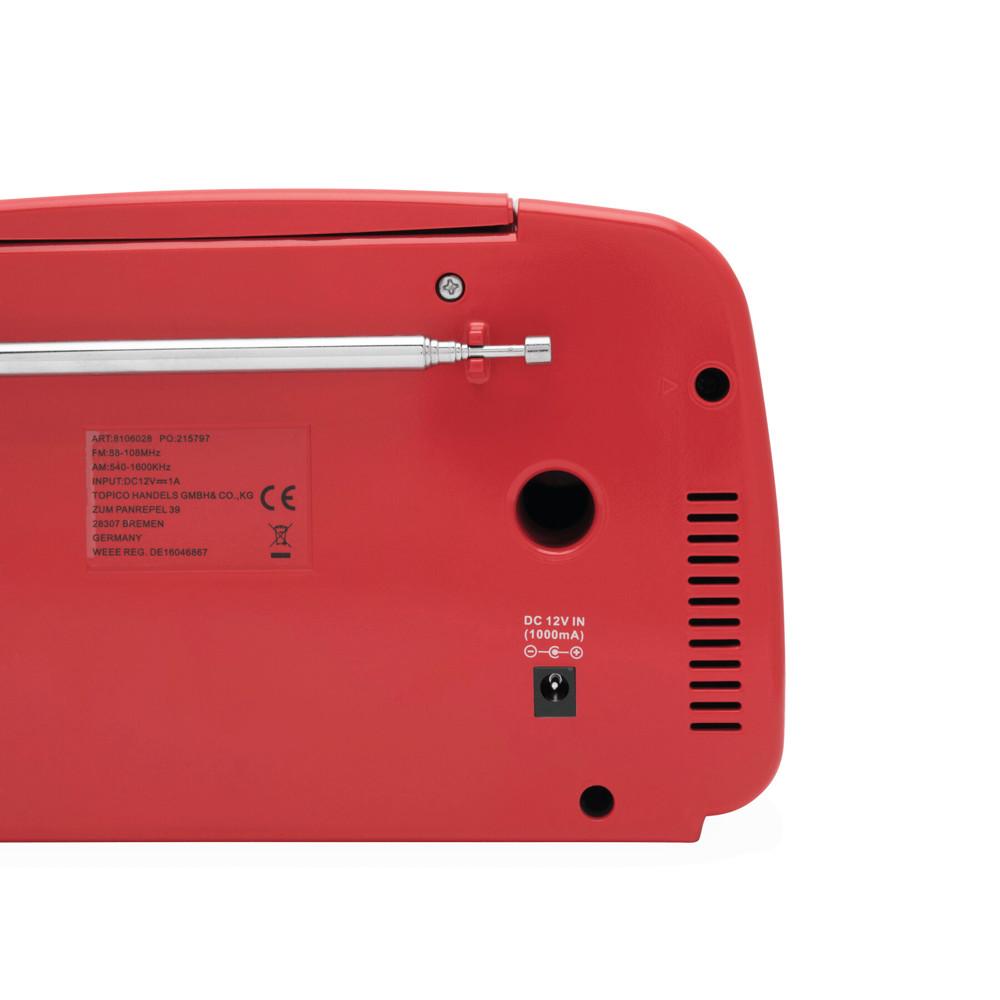 CD-Radiorekorder DINER: AM/FM-Radio, CD-Player, zur Koppelung mit wireless-fähigen Geräten, kompatibel zu Bluetooth®, AUX-IN Funktion, Abspielen von MP3-Dateien über USB-Anschluss und CD, Kopfhöreranschluss, beleuchtetes Display, mit 12-Volt-Netzadapter, 2 Drehregler: laut/leise und für "Album vor/zurück" (im MP3-Modus), inkl. Infrarot-Fernbedienung, mit Bedienungsanleitung, in Box