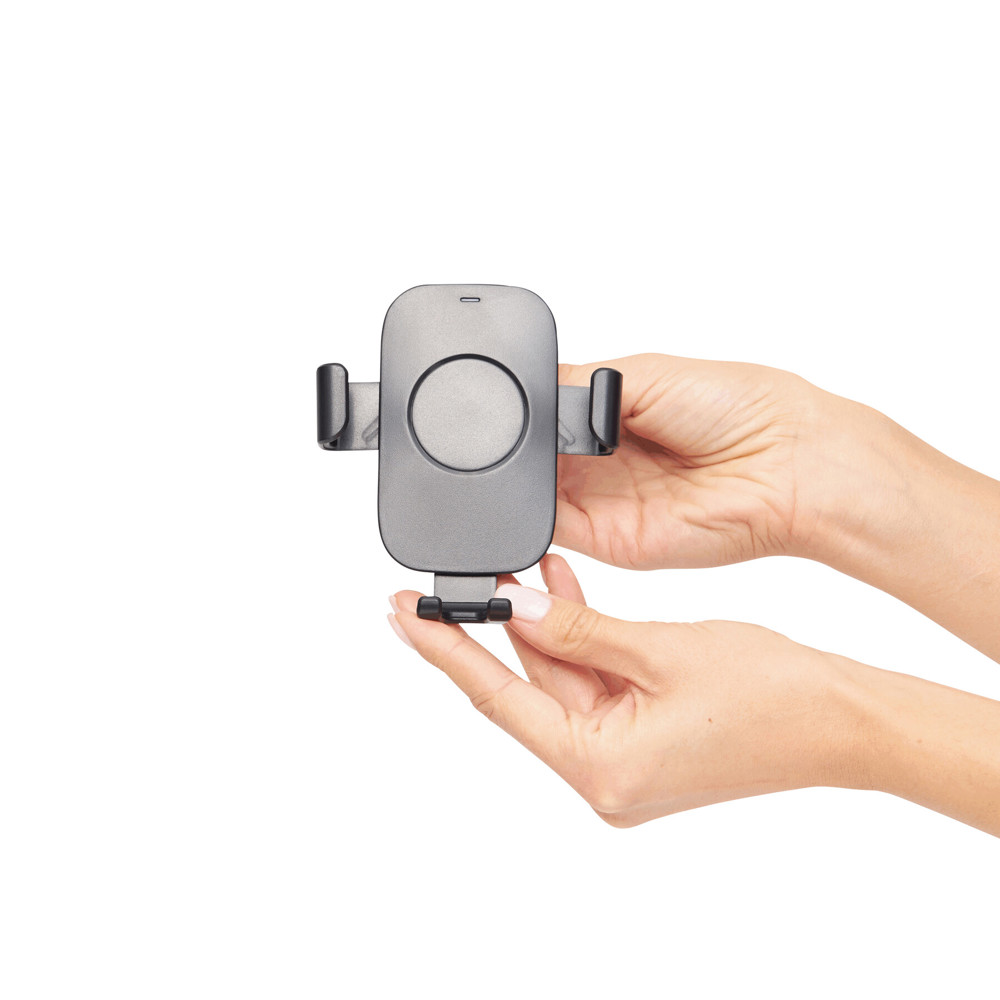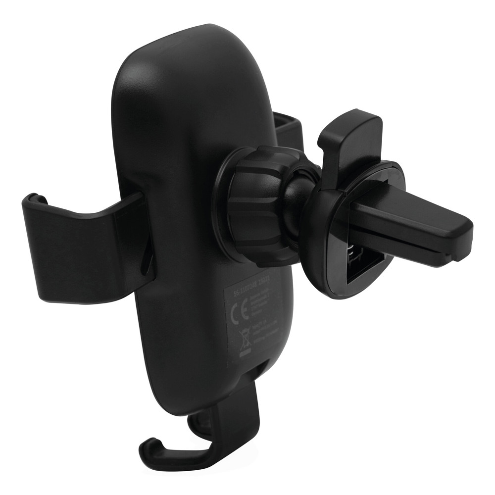 Smartphone-Halter IN CAR: geeignet für die gängigsten Smartphones mit induktiver Ladefunktion, Klemme für die Befestigung an Auto-Lüftungsschlitzen (für verschiedene Lamellenstärken), Kugelgelenk zur optimalen Ausrichtung, Ladeeinheit mit integriertem USB-Ladekabel (Länge: 1 m), in Box