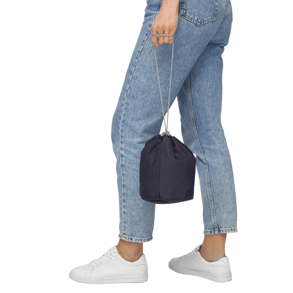 Kulturtasche TUBE: mit Kordelzug und Kunststoffstopper, innen mit 3 Netz-Einsteckfächern, 4 Flakonschlaufen und zusätzlichem Reißverschlusstäschchen für kleine Kosmetikartikel, ist durch Druckknopf entnehmbar, gute Übersicht des Inhalts durch Umschlagen des oberen Randes
