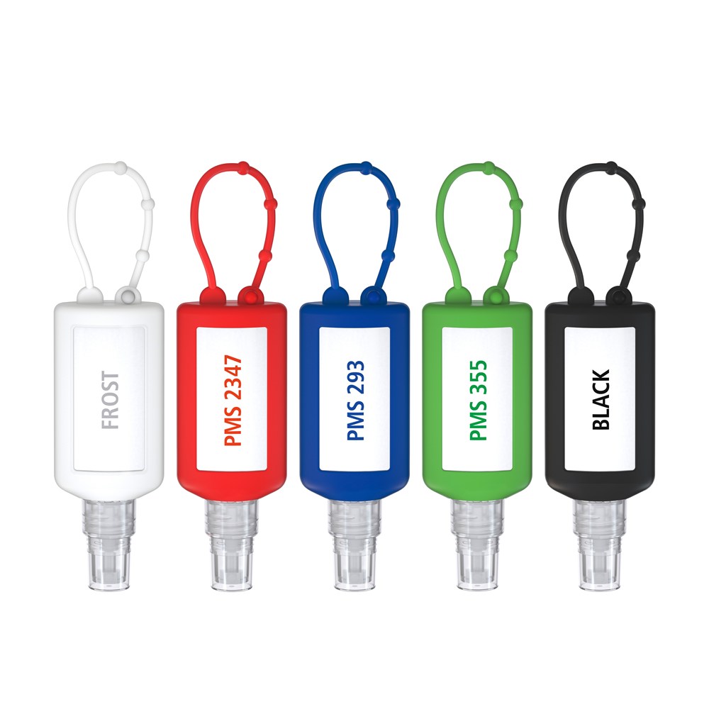 Das Spray mit Silikonhülle ist nicht nur optisch ein echter Hingucker! Raffiniert mit Schlaufe zum Anhängen ans Handgepäck, an den Rucksack oder an den Kinderwagen.