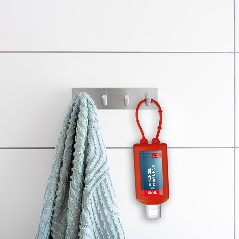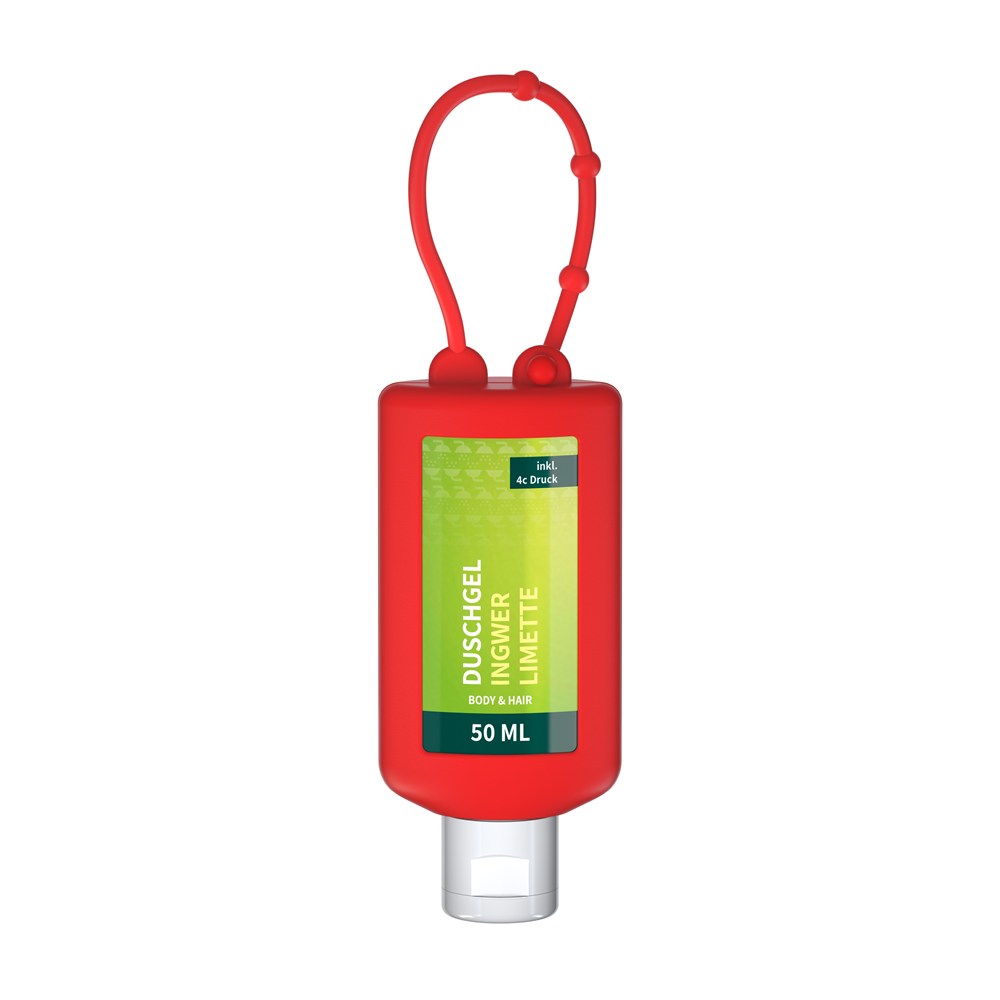 Duschgel Ingwer-Limette, 50 ml Bumper rot, Body Label (R-PET)
